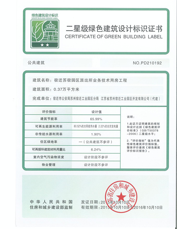 園區(qū)派出所業(yè)務(wù)技術(shù)用房工程通過(guò)國(guó)家二星級(jí)綠色建筑認(rèn)證