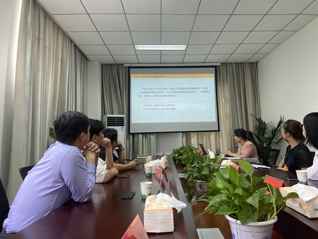 6月19日下午,中電建江蘇激光智造發(fā)展有限公司劉攀總經(jīng)理一行10人來園區(qū)參觀學(xué)習(xí)檔案工作。園區(qū)檔案中心和開發(fā)公司檔案工作人員接待了劉攀一行。