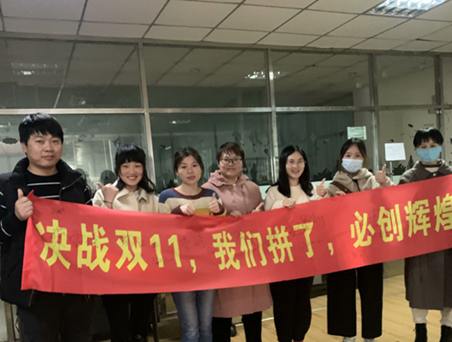 11月5日下午,我們來到騰輝家具的辦公室,首先映入眼簾的是一條亮麗的條幅:“決戰(zhàn)雙11,我們拼了,必創(chuàng)輝煌!”據了解,騰輝家具從十月份就開始備戰(zhàn)“雙十一”了,從運營的活動報名,到工廠的積極備貨,再到客服的服務態(tài)度。除了騰輝家具,園區(qū)電商企業(yè)四通科技、左氏木業(yè)等電商企業(yè)也都紛紛進行了動員。