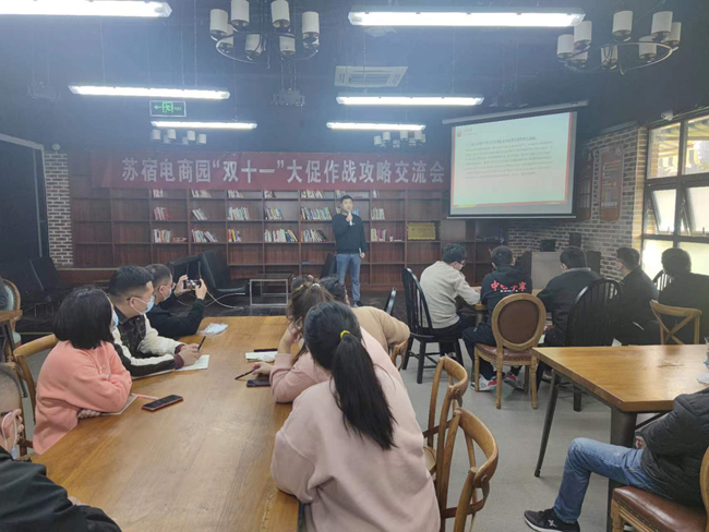 2022年"雙十一"已進入倒計時,蘇宿電商園品牌商家紛紛摩拳擦掌,迎接這一全年最大爆發(fā)場。正值“雙十一”蓄水期,蘇宿電子商務產業(yè)園提前組織各商家進行大促作戰(zhàn)攻略交流會。