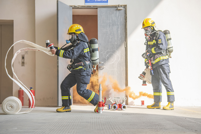 此次演練完全按照“真實(shí)模擬火場(chǎng)、現(xiàn)場(chǎng)領(lǐng)受任務(wù)、無預(yù)案戰(zhàn)斗展開”模式進(jìn)行,災(zāi)情假設(shè)為B10二層服裝加工企業(yè)起火,該企業(yè)立即啟動(dòng)自救預(yù)案并撥打消防報(bào)警電話。園區(qū)消防應(yīng)急救援大隊(duì)接警后,一次性調(diào)派2輛消防車11名消防戰(zhàn)斗員趕赴處置,演練過程中按照救人第一的指導(dǎo)思想,科學(xué)施救,內(nèi)攻滅火、內(nèi)攻搜救、外圍控火、緊急撤離等技戰(zhàn)術(shù)措施控制火勢(shì),消滅火災(zāi)。
