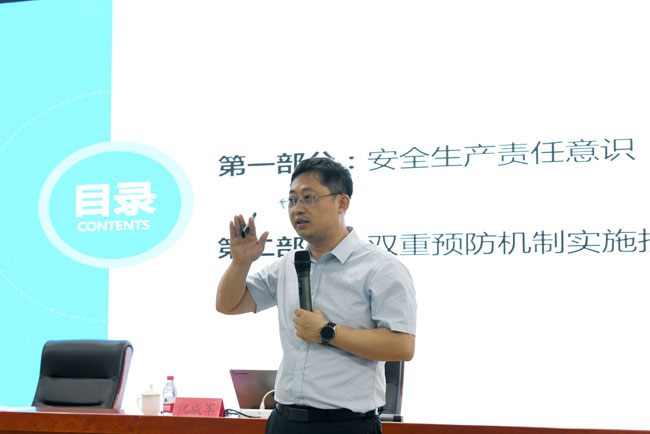 本次培訓(xùn)邀請(qǐng)國(guó)家注冊(cè)安全工程師祝成軍進(jìn)行授課。培訓(xùn)會(huì)上,祝成軍圍繞開(kāi)展安全生產(chǎn)雙重預(yù)防體系建設(shè)工作的意義,相關(guān)法律法規(guī)、標(biāo)準(zhǔn)等內(nèi)容進(jìn)行了詳細(xì)講解,并結(jié)合具體事故案例,對(duì)如何理解雙重預(yù)防體系、如何劃分作業(yè)單元、如何進(jìn)行風(fēng)險(xiǎn)辨識(shí)與評(píng)價(jià)等內(nèi)容進(jìn)行了專門(mén)的講解。