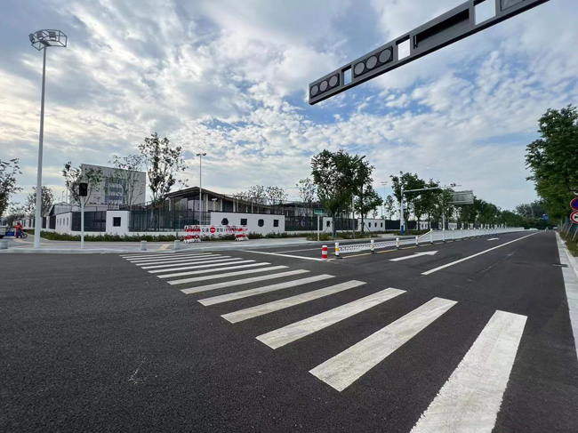 為保障宿遷市蘇州外國語實驗學校上下學期間周邊道路安全通暢,市政工程部根據(jù)園區(qū)現(xiàn)行道路情況,結(jié)合交通行政主管部門意見,在學校周邊道路設(shè)置學校警示牌、震蕩標線和部分道路中間增加隔離護欄等內(nèi)容。