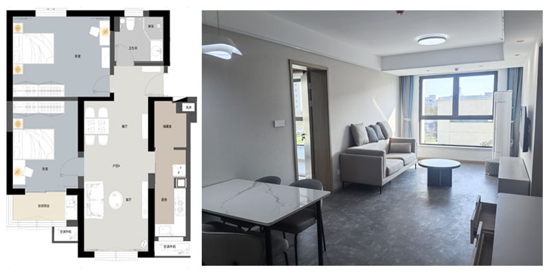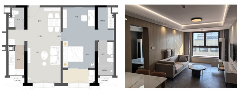青年公寓一期3#白領(lǐng)公寓共三種戶(hù)型,A戶(hù)(2室1廳1廚1衛(wèi)面積84m2)44間、B戶(hù)(1室1廳1廚1衛(wèi),面積35m2)88間、C戶(hù)(1室1廳1廚2衛(wèi),面積72m2)44間,共計(jì)154間,裝修面積約1.3萬(wàn)平方米。白領(lǐng)公寓旨在服務(wù)于入駐企業(yè)高精尖人才,是園區(qū)迄今為止已建成的單體建筑規(guī)模最大、配套設(shè)施最為完善的白領(lǐng)公寓,內(nèi)設(shè)廚灶、抽油煙機(jī)、櫥柜、床、書(shū)桌、衣柜、空調(diào)、冰箱及電視等基本生活設(shè)施,為入住人群提供拎包即住的便利。