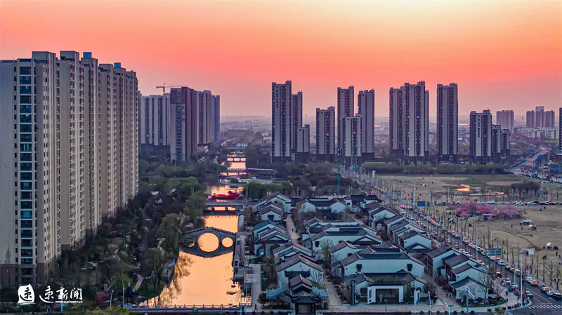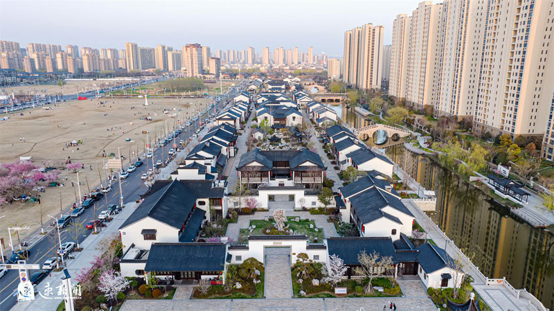 3月31日,蘇州街盛開(kāi)的櫻花、海棠、玉蘭與蘇式街區(qū)相互映襯,美不勝收。