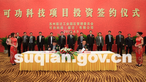 4月9日上午,落戶園區(qū)、總投資3億美元的可功科技(宿遷)有限公司項目在市區(qū)星辰國際酒店正式簽約。該項目是繼可成科技(宿遷)有限公司項目落戶園區(qū)之后,臺灣可成集團在宿遷追加的又一重大投資項目。省經(jīng)信委、商務(wù)廳、國土廳等部門領(lǐng)導(dǎo),蘇州市副市級干部、蘇州工業(yè)園區(qū)“走出去”領(lǐng)導(dǎo)小組副組長沈小鷹,可成集團董事長洪水樹、總經(jīng)理洪天賜,市領(lǐng)導(dǎo)繆瑞林、藍紹敏、卜平、王益、潘玉利、顧玉坤等出席項目投資簽約儀式。市委副書記、市長藍紹敏主持簽約儀式。