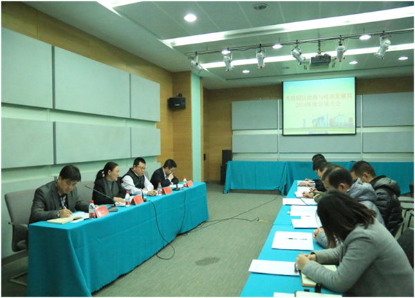近日,園區(qū)招商與經濟發(fā)展局召開2014年度工作總結會議。園區(qū)黨工委副書記、管委會副主任駱敏出席并講話。招商局全體人員參加會議。