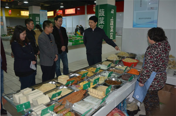 戈亮一行現(xiàn)場(chǎng)聽取了菜場(chǎng)負(fù)責(zé)人開業(yè)準(zhǔn)備工作情況匯報(bào),實(shí)地察看了生鮮菜場(chǎng)規(guī)劃布局、開業(yè)方案、食品安全臺(tái)賬、食品安全檢測(cè)室設(shè)備,與各經(jīng)營(yíng)戶親切交談。