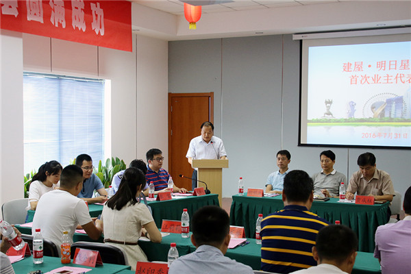 7月31日上午,建屋?明日星城小區(qū)首屆業(yè)主代表大會(huì)在明日民眾聯(lián)絡(luò)所召開(kāi),園區(qū)第一家小區(qū)業(yè)主代表大會(huì)成立和業(yè)主委員會(huì)產(chǎn)生。園區(qū)黨工委委員、管委會(huì)副主任戈亮出席大會(huì)并講話。園區(qū)工委管委會(huì)辦公室、勞動(dòng)保障和社會(huì)事業(yè)局、規(guī)劃建設(shè)局等職能部門、園區(qū)部分住宅小區(qū)物業(yè)單位代表列席大會(huì)觀摩。