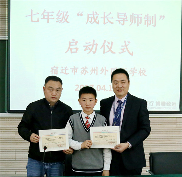 近日,宿遷市蘇州外國語學(xué)校七年級16位孩子和他們的家長監(jiān)護(hù)人還有他們新認(rèn)的“干爹”“干媽”齊聚學(xué)校階梯教室,舉行隆重的簽約儀式。這些“干爹”“干媽”是學(xué)校給首批孩子們配的成長導(dǎo)師,每位教師與一個孩子結(jié)對,全方位關(guān)心孩子的成長,陪伴孩子們一起度過快樂而充實的初中生活,力求“個個進(jìn)步,人人成星”。“成長導(dǎo)師制”這種親情化、個性化、人本化的育人模式,是宿蘇外實施素質(zhì)教育,提升教育核心競爭力的需要;是宿蘇外服務(wù)家長,擴(kuò)大教育品牌影響力的需要;是宿蘇外回報社會,落實“兩聚一高”,建設(shè)和諧社會的需要。
